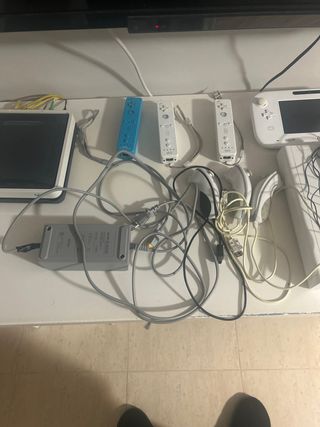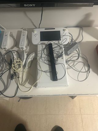 📦Producto: Pack consola y mandos + juegos + accesorios 🎮Consola: Wii U (también se usa de Wii normal) 🕹️Juegos: Call of duty varios, Juegos Wii, Just dance varios, Mario kart, juegos deportivos, juegos de mascotas, lego Harry potter, La Voz 🧰 Accesorios: 3 Mandos Wii normales, 3 mandos complementarios al normal, 1 Wii U GamePad, 2 micrófonos, 1 Volante, cables necesarios, sensor de mandos ✅Estado: Ha sido bastante usada, pero sigue funcionando ⚠️Detalles: Bastante uso. ❓Dudas: Cualquier duda no duden en contactar 💶Precio: 150€ todo el pack (negociables)