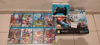 - Consola: Wii U (Negra) con cables de alimentación. Controles: - Wii U Gamepad con funda - Wii U Pro Controller oficial - 2 Wii Remotes (uno edición especial Dragon Ball) - Extras: Barra de sensores y figura Amiibo de Mario Colección de 11 juegos: - Xenoblade Chronicles X - Splatoon - Super Mario Maker - Donkey Kong Tropical Freeze - ZombiU - LEGO Jurassic World - Call of Duty: Black Ops II - Pirates of the Caribbean Wii - Mario Kart Wii - Super Mario Galaxy Wii - New Super Mario Bros Wii