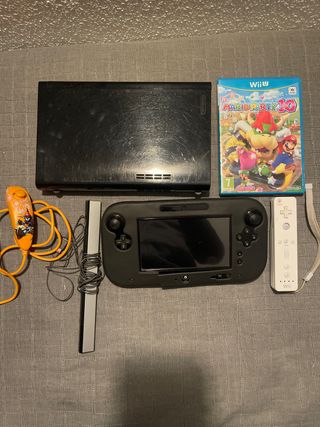 Consola Wii U en color negro, ideal para disfrutar de tus juegos favoritos. - Incluye consola, mando Wii U GamePad, mando Wii, y juego Mario Party 10. - Incluye sensor bar.