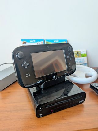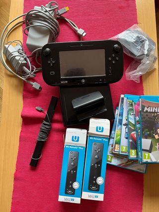 Nintendo Wii U en muy buen estado y totalmente funcional. Ideal para jugar en familia, para coleccionistas o para quien quiera un pack completo listo para usar. Incluye absolutamente todo lo necesario y varios extras. Contenido del pack: • Consola Wii U en perfecto funcionamiento • GamePad original + su lápiz táctil • Cable de alimentación de la consola • Cargador del GamePad • HDMI de alta calidad • Sensor bar (barra sensora para los mandos) • Soporte de carga del GamePad • Soportes y base originales • 2 mandos adicionales de Wii U (con sus fundas protectoras) • Todos los cables originales • +6 Juegos