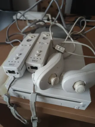 Se vende consola Nintendo Wii blanca en perfecto estado, con todo lo necesario para entrenar en casa. Incluye: • 🎮 2 mandos con fundas protectoras • 🎮 1 mando joystick • 💿 Juegos: Wii Sports, Wii Play y Wii Fit • 🏋️♂️ Placa Wii Fit con funda • 🔌 Cables de conexión originales • 🟩 Esterilla fitness verde ✅ Todo funciona correctamente.