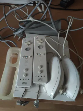 Vendo mi consola Wii, en color blanco. Está en buenas condiciones. Incluye la consola Wii. -Base. -Cables de alimentación generales. -Cables de conexión a TV. Incluye dos mandos inalámbricos, cuatro fundas protectoras de silicona y un mando Nunchuk. - Los mandos y el Nunchuk son blancos. - Las fundas están en buenas condiciones. Incluye Tabla Wii Fit en buenas condiciones. -La tabla y su funda protectora verde.