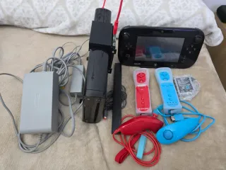 Consola Wii U negra de 32 GB con SSD de 248gb, SD de 128gb, barra sensora de wii y 2 mandos wii completos.