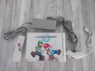 Consola Nintendo Wii con temática de Mario Kart. Incluye accesorios para empezar a jugar. - Consola Wii. - Mando Wii Remote. - Nunchuk. - Adaptador de corriente. - Cables de conexión. - USB con algunos juegos