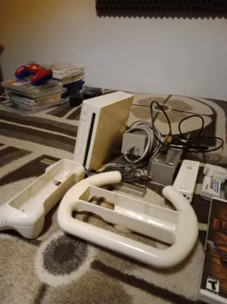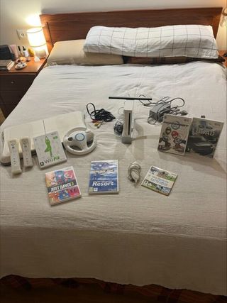Vendo Nintendo Wii original en perfectas condiciones de funcionamiento. Ha tenido uso, pero está muy bien cuidada, sin defectos ni fallos. Ideal para jugar en familia o revivir los clásicos de Nintendo. 🔌 Incluye todos los cables necesarios y la cámara/sensor de movimiento para colocar en la televisión. 📦 Contenido del lote: -Consola Nintendo Wii -2 mandos Wii -1 mando accesorio adicional -Volante para Mario Kart -Tabla Wii Fit -Sensor de movimiento para TV 🎮Juegos incluidos: -Mario Kart Wii -Off Road -Wii Sports Resort -Wii Fit ✅ Todo funciona perfectamente