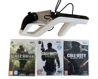 Pack de juegos Call of Duty para Wii, incluye pistola Zapper y mandos. - Call of Duty: Modern Warfare - Call of Duty: Modern Warfare 3 - Call of Duty: Black Ops