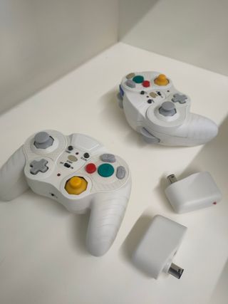 Dos mandos para consola Xbox compatibles con wii en color blanco y gris inalámbricos