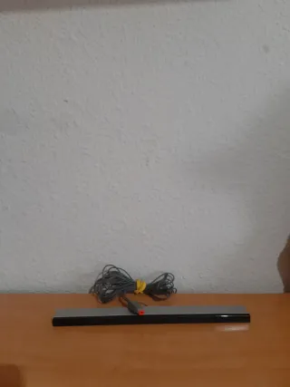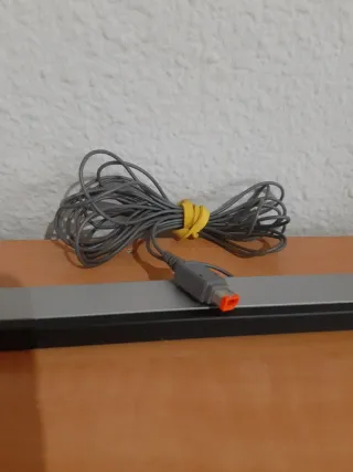 Barra sensora original para Nintendo Wii. Este accesorio es esencial para el funcionamiento de los mandos de Wii. - Cable gris con conector. - Incluye cinta amarilla para sujetar el cable.