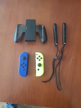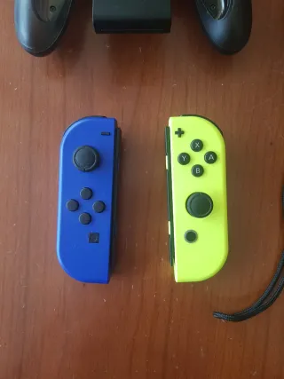 Par de Joy-Cons originales para Nintendo Switch en colores azul y amarillo. 25€ x Joycons 30€ x Joycons más Mando Grip 35€ x Joycons más acoples 40€ x Joycons más acoples más Mando Grip - Joy-Con izquierdo en azul. - Joy-Con derecho en amarillo. - Incluye correas de muñeca. - Incluye mando Grip. PS5 PS4 PS3 PS2 PS1 PSONE XBOX SERIES ONE S X NINTENDO SWITCH 2 OLED WII U PC GAMER
