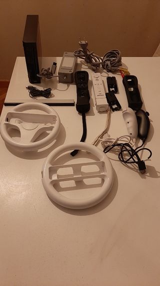 Vendo mi consola Wii blanca. Incluye varios juegos y mandos adicionales. La consola está en buen estado, con algunos signos normales de uso. - Incluye 2 volantes para juegos de conducción. - Se incluyen 8 juegos: Wii Fit, Wii Sports, Wii Play, Just Dance 4, Sonic Colours, Wii Sports Resort, Big Brain Academy y Mario Kart Wii. - 2 mandos Wii Remote Plus y 2 nunchucks.
