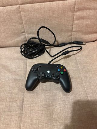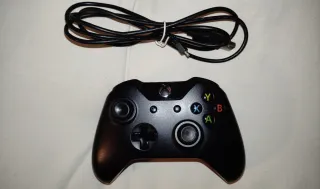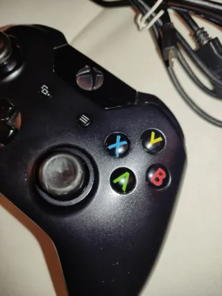 Mando de control para Xbox One en color negro. Incluye cable USB de carga. Como se puede ver en las imágenes, aún conservo la caja aunque está un poco reventada. El mando tiene signos de uso, pero funciona como el primer día. Precio no negociable. - Diseño ergonómico. - Botones frontales A, B, X, Y. - Sticks analógicos precisos. - Cruceta direccional.