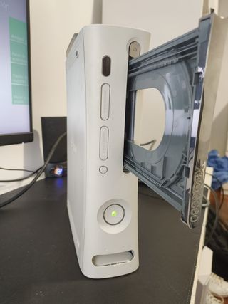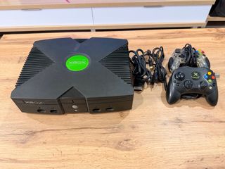 Consola Xbox clásica en color negro con mĄG|@, ideal para coleccionistas y amantes de los videojuegos retro. Incluye accesorios para empezar a jugar. - Consola Xbox Classic. - Dos mandos de control. (el transparente hay que repararlo) - Cables de conexión. A tener en cuenta: - El DVD hay que repararlo, puedes conectar a la consola por FTP...ya sabes. - El ventilador principal toca cambiarlo. Se vende para piezas o repararar, por ese motivo no acepto devoluciones.