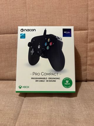 Mando Nacon Pro Compact para Xbox o PC en color negro. Diseñado para una experiencia de juego cómoda y precisa. - Diseño ergonómico. - Botones frontales con iluminación LED. - Cable USB trenzado de 3 metros.