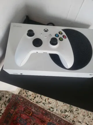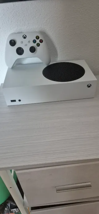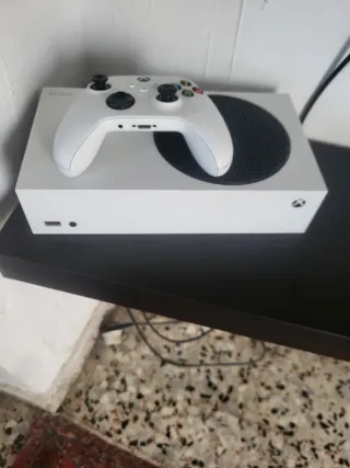 Vendo Xbox Series S blanca de 512GB en perfecto estado. Está como nueva, siempre muy cuidada y restablecida de fábrica, lista para usar desde el primer minuto. Muy cuidada, con protectores en los puertos no usados y rejillas en todas las ventilación extra para que no entre polvo Incluye: Caja original Cable de corriente Cable HDMI Soporte impreso 3d para colgar en pared Importante: No incluye mando. Si la quieres con mando son 30 euros más. Ideal para jugar a Game Pass, streaming o como consola secundaria por su tamaño compacto y rendimiento. Funciona perfectamente y puedes verla sin compromiso. Precio ajustado a su estado.