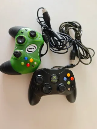 Pack de 2 mandos para Xbox original (clásica), ambos probados y funcionando: Mando original Microsoft Xbox “Controller S” (negro) – el modelo oficial. Powerpad Pro Color (verde transparente) – mando compatible de otra marca. Funcionando, ideal como segundo mando o para tener de repuesto). ✅ Sticks sin drift. Se entregan tal cual se ven en las fotos, con sus cables. Para recogida en mano en Barcelona, en la zona de Trinitat Nova. Precio no negociable.
