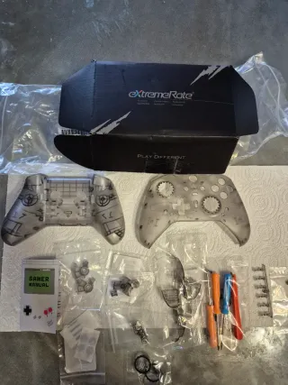 Kit de carcasa para mando Xbox One Elite. - Incluye carcasa frontal y trasera. - Diseño transparente con detalles internos. - Incluye herramientas y tornillería para el montaje.