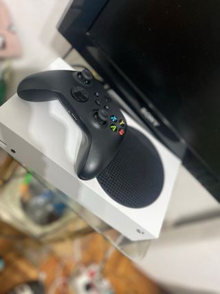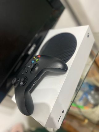 Consola Xbox Series S en estado prácticamente nuevo con 512 GB de almacenamiento. Incluye dos mandos y todos los cables necesarios para su conexión. - Capacidad de 512 GB. - Dos mandos inalámbricos. - Cables de conexión incluidos. - Funcionamiento perfecto - Usada en ambiente sin humo ni mascotas