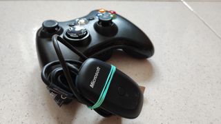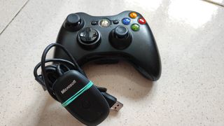 Mando de la X-Box con conector inalámbrico para vincularlo al ordenador (entrada USB).