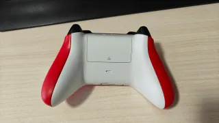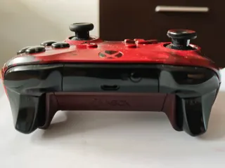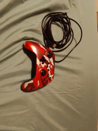 Mando oficial de Xbox con un diseño de camuflaje en tonos rojos y negros. Perfectamente funcional , si lo agitas suena por dentro y tiene pinta de que es algo que se ha metido por donde las pilas, pero no afectanal funcionamiento.