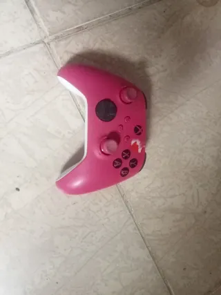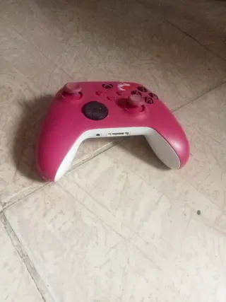 Mando de Xbox Series X en color rosa. - Diseño ergonómico. - Botones frontales A, B, X, Y. - Sticks analógicos. - Gatillos y bumpers. Fallo de un Joys de ahí su precio LO ROJO ES UNA PEGATINA,SE QUITA