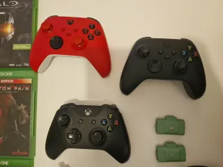 Conjunto de mandos para Xbox en diferentes colores. - Mando rojo - Mando azul - Mando dorado - Mando negro con diseño - Mando verde - Mando blanco - Mando negro en caja (Carbon Black)