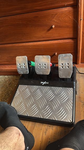 Volante de carreras PXN V10 con pedales. - Diseño deportivo con costuras rojas. - Palancas de cambio metálicas. - Botones integrados en el volante. - Palanca de cambio en h de 6 velocidades -mando hori para poder jugar en ps5 -compatible con pc/xbox/ps4 y ps5 -caja original Acepto cambio por otro volante de caracteristicas similares