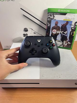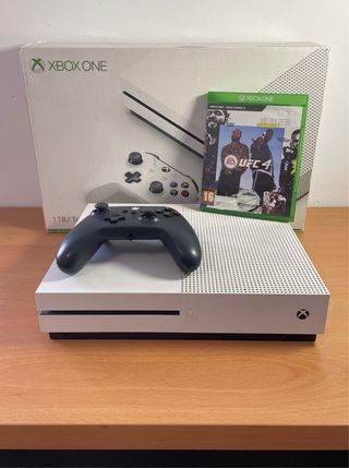 Consola Xbox One S en color blanco con 1TB de almacenamiento. Incluye el videojuego UFC 4 y el motogp24 en formato digital 📦Incluye caja y manuales ✨Todos los cables originales 🎮Mando oficial con cable 📨Cualquier duda escribeme