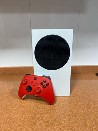 Consola Xbox Series S en color blanco, con un mando adicional en color rojo. - Diseño compacto y moderno. - Incluye un mando inalámbrico. -tambien viene con los cables necesarios