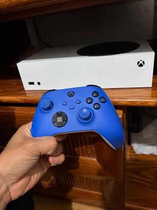 Consola Xbox Series S en color blanco, acompañada de un mando verde casi nuevo con 4 horas de uso. Funciona perfectamente,con el cable de alimentación.