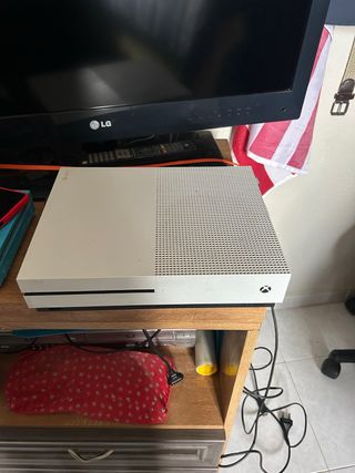 Consola Xbox One S en color blanco. - Diseño elegante y compacto. - Ideal para entretenimiento en casa. - Le falta la solamente la tapa trasera del mando y la funda de los joysticks