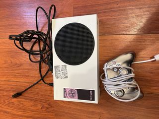 Consola Xbox Series S en color plata y blanco. Incluye mando y cables. - Diseño moderno y compacto. - Mando plateado con detalles blancos. - Cables de conexión incluidos.
