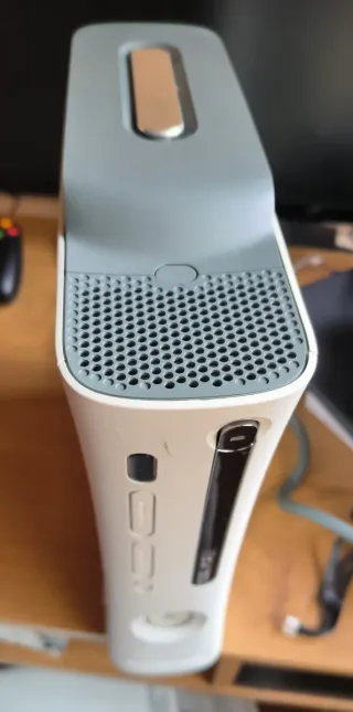 Consola Xbox 360 en color blanco con disco duro de 120GB. M4G1A En buen estado, con mantenimiento recién realizado. Incluye consola fuente de alimentación, cable HDMI y mando inalámbrico. Se entrega con juegos instalados en el disco duro. Retrocompatible con Xbox clásica. Enchufar y listo. más información a través del chat.