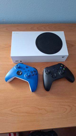 Se vende xbox series s en perfecto estado con todos los cables originales y 2 mandos, el negro tiene menos de 1 año y funciona perfecto, al azul no le funciona el boton LB el resto funciona perfecto