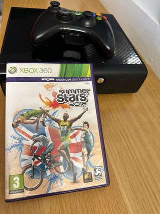 Xbox 360 slim. En perfecto estado de funcionamiento. Incluye cable HDTV y cable y fuente de alimentación. También incluye un mando y 3 juegos (Fórmula 1 2013, Battlefield Hardline y Fifa 2013, edición especial). No incluye disco duro ni hdmi.