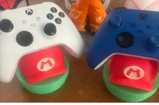 Soporte para mando de videojuegos con diseño inspirado en Super Mario. Compatible con mandos de Xbox, switch, ps4, PS5... - Base con forma de tubería verde. - Gorra roja de Mario como soporte principal. - Detalle del logo 'M' de Mario. *Modelo 3D de aslan.3dchile, disponible en makerworld. Licencia CC BY ND