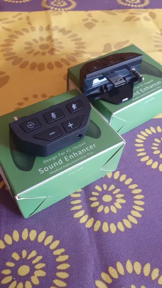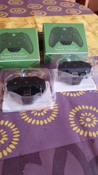 Vendo 2 adaptadores de audio “Sound Enhancer – Headset Audio Controller Plus” compatibles con mandos Xbox One y Xbox Series X|S. ✔️ Estado como nuevos, apenas usados ✔️ Funcionan perfectamente ✔️ Control directo de volumen, mute de micrófono y balance de sonido ✔️ Ideales para auriculares con cable ✔️ Se conectan directamente al mando Se entregan con su embalaje original, tal como se ve en las fotos. 📦 Precio: 15 € cada uno 25 € los dos juntos (precio negociable) 📍 Entrega en mano o envío por Wallapop. Si tienes cualquier duda, ¡escríbeme sin compromiso!