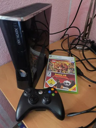 Xbox 360 Negra con Mando y Juego Kung Fu Panda