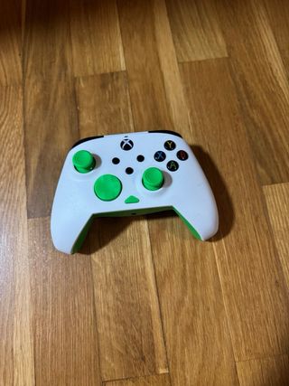 Mando original de Xbox inalámbrico. Funciona correctamente. Botones y joysticks responden bien. Buen agarre con grips traseros verdes. Estado general bueno, con señales normales de uso. Se vende por no usar. Incluye solo el mando (lo que se ve en las fotos). Entrega en mano o envío por Wallapop. Cualquier duda, pregúntame sin problema.