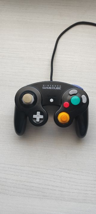 Se vende mando original para Nintendo GameCube de color negro en buen estado. Desmontado, revisado y limpiado pieza a pieza. El cable está perfecto, sin retorcidos, como se aprecia en la última imagen.