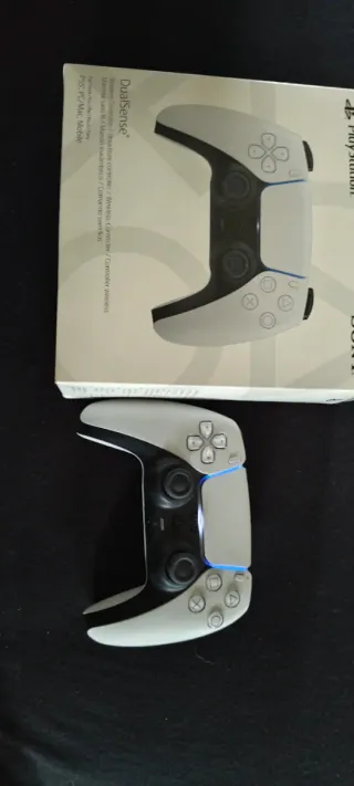 Mando inalámbrico para PlayStation 5 en color blanco. No tiene golpes de ningún tipo, lo vendo porque tiene drift en el joystick izquierdo y no tengo tiempo para andar cambiándoselo. Gatillos, botones y demás en perfecto estado. El precio lo podemos negociar.