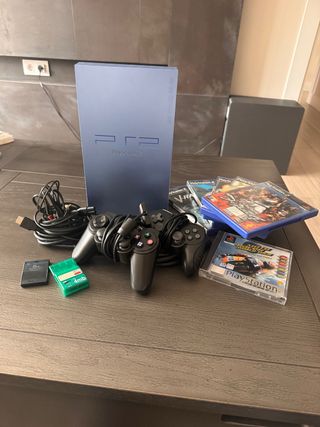Se vende consola PlayStation 2 en color azul, junto con accesorios y videojuegos. Siempre utilizada por un adulto, por lo que está en perfectas condiciones. Ideal para coleccionistas o enamorados de lo “vintage”. - Incluye dos mandos (no son originales) - Incluye tarjeta de memoria de 8MB. - Incluye tarjeta de memoria de 4MB. - Incluye varios juegos : Virtua Fighter 4 Midnight Club II V-Rally 3 Moto Racer World Tour F1 2006 Gran Turismo