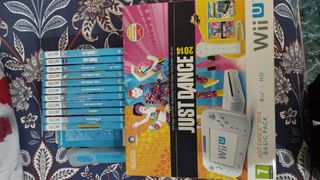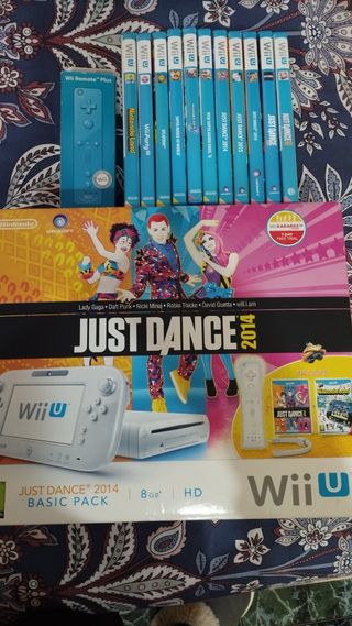 Wii U blanca en su caja original con todo el cableado + mando wii azul + 11 juegos. Funciona perfectamente. La caja contiene la consola, el Game pad, un mando wii blanco, sensor y cableado completo original y juegos Just Dance 2014 y Nintendoland. Además de un mando extra de wii en color azul también en su caja original y 9 juegos más (Just Dance 2015, Just Dance 2016, Just Dance 2017, Just Dance 2019, Wii Party U, Splatoon, Mario Kart 8, Super Mario Bross U, Super Mario 3D World). Todo se encuentra en perfecto estado y funciona perfectamente, tan solo tiene pequeñas marcas de uso casi imperceptibles.