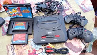 Consola de videojuegos Sega Mega Drive II en color negro. Incluye dos mandos y juegos. - Consola Sega Mega Drive II - Dos mandos - Juego Dynamite Headdy - Juego adicional Mega Drive