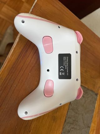 Mando de color blanco con detalles en rosa, diseñado para ser compatible con PlayStation y Nintendo Switch. Su diseño ergonómico ofrece comodidad durante el uso. - Diseño en blanco y rosa. - Compatible con consolas PlayStation y Switch. Esta nuevo no tiene ningún fallo está recién comprado y lo vendo por falta de uso