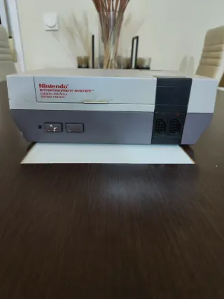 Nintendo NES. ( Versión española). 2 mandos. Pistola. Juego de Super Mario Bros / Duck Hunt. Falta cable de conexión. En buen estado.