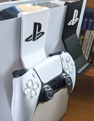 Soporte para mando de PS5, hecho con impresora 3D. - Diseño elegante y compacto. - Se adapta perfectamente a la consola PS5. - Material resistente y duradero.