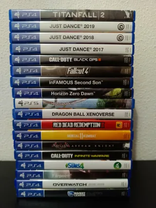 Lote de videojuegos para PlayStation 4, incluye también un cargador para mandos. Precio de lote entero negociable. Si, también vendo individualmente los juegos pero precios más competitivos. - Titanfall 2 - Just Dance 2019 - Just Dance 2018 - Just Dance 2017 - Call of Duty: Black Ops III - Fallout 4 - inFAMOUS Second Son - Horizon Zero Dawn - Horizon Forbidden West ps5 - Dragon Ball Xenoverse - Red Dead Redemption II - Mortal Kombat 11 - Batman: Arkham Knight - Call of Duty: Infinite Warfare - The Sims 4 - Farpoint - Overwatch: Origins Edition - Rocket League: Collector's Edition Los juegos están en buen estado, respondo dudas👍 .