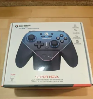 GameSir Super Nova en color azul, nuevo y sin abrir. Mando premium con sticks Hall, gatillos analógicos, vibración háptica, iluminación RGB y conectividad triple (Bluetooth, 2.4 GHz y USB-C). Compatible con Switch, PC, Steam Deck, Android e iOS. Diseño ligero, ergonómico y con tasa de sondeo de 1000 Hz. Estado: Precintado