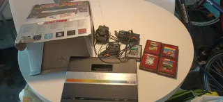 Se vende consola Atari 7800 con caja y accesorios, junto con cuatro cartuchos de juegos. - Consola Atari 7800. - Caja original. - Dos mandos. - Transformador de corriente. - Cartuchos de juegos: sprint máster, Millipede, Desert Falcon, y Jr PacMan X 200€ Incluyendo Mario Bros de Atari 7800 x 250€