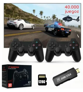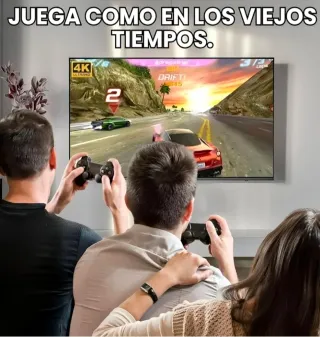 Sistema de entretenimiento retro con dos mandos para revivir tus juegos favoritos. Incluye una tarjeta de memoria para almacenar tus partidas. Dos mandos incluidos. - Tarjeta de memoria de 128GB. Más de 30.000 juegos arcade integrados. Disfruta de una colección inmensa que incluye títulos de las consolas clásicas más queridas de los años 90 y 2000. Revive la experiencia de las máquinas arcade, juegos de plataformas, aventuras y luchas que marcaron época. Una auténtica consola retro lista para usar desde el primer momento, sin necesidad de descargas ni configuraciones.